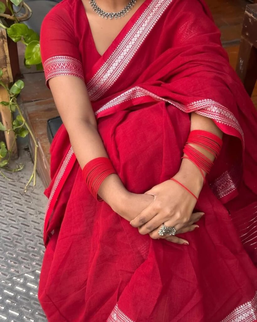 বাঙালি নারীর পরনে চিরায়ত সুতি শাড়ি