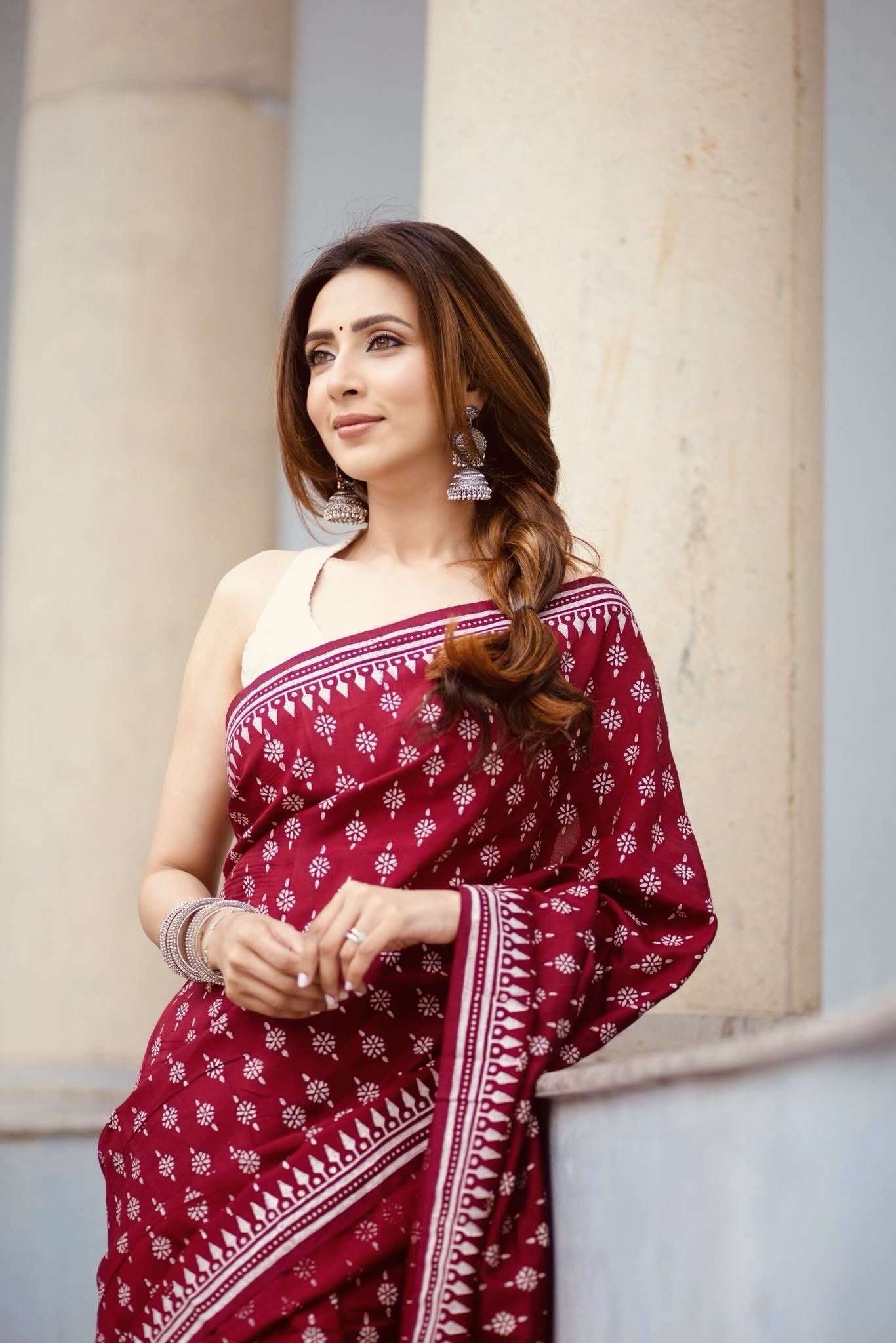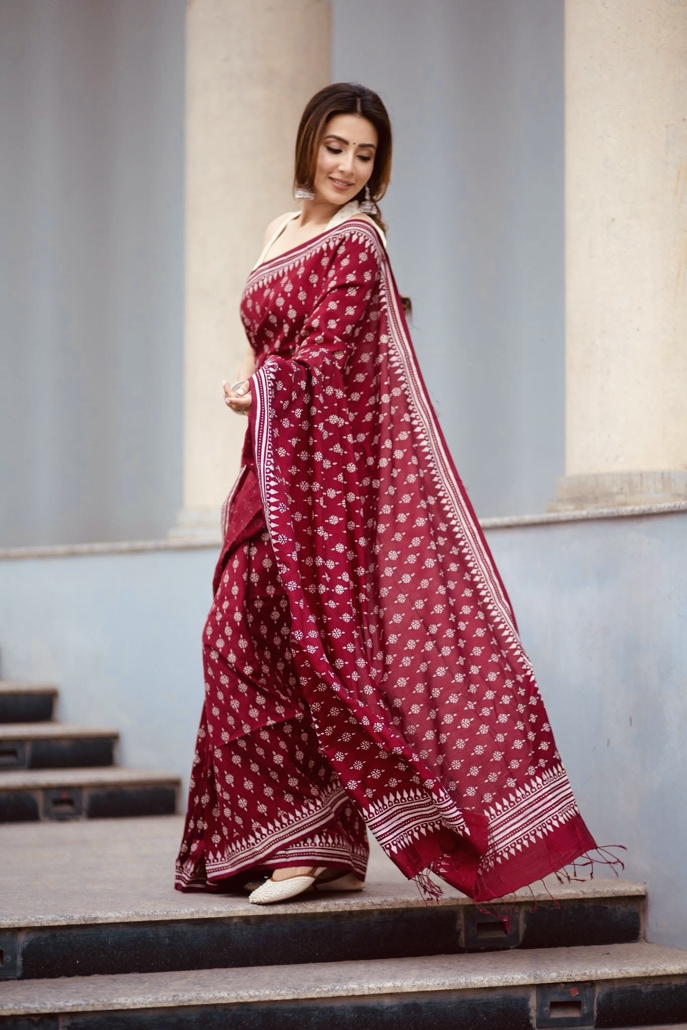 🧵 Border: টারসেল ডিজাইন করা শাড়ির পাড় — আধুনিক ও গ্রেসফুল টাচ।